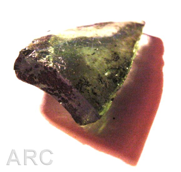 Vetro verde, bruciato. Pezzo di una vecchia bottiglia verde. Cliccare sulla foto per ingrandire. |